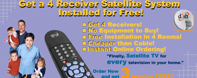 Free Installation of a Dish Network System and up to Four Receivers.* 3 months of FREE SERVICE with no bills!
